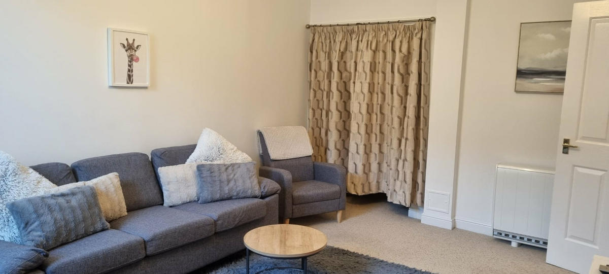 Comfortable one bed/sitting room apartment with own kitchen, shower room and dry storage cellar with washing machine.