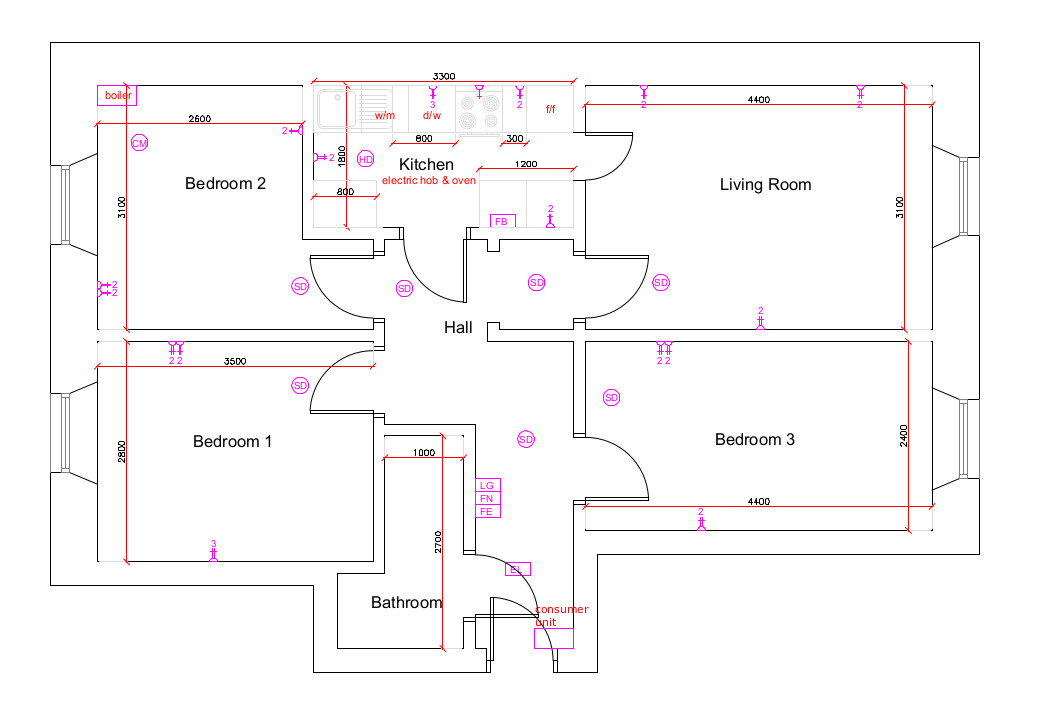 3 double bedrooms;