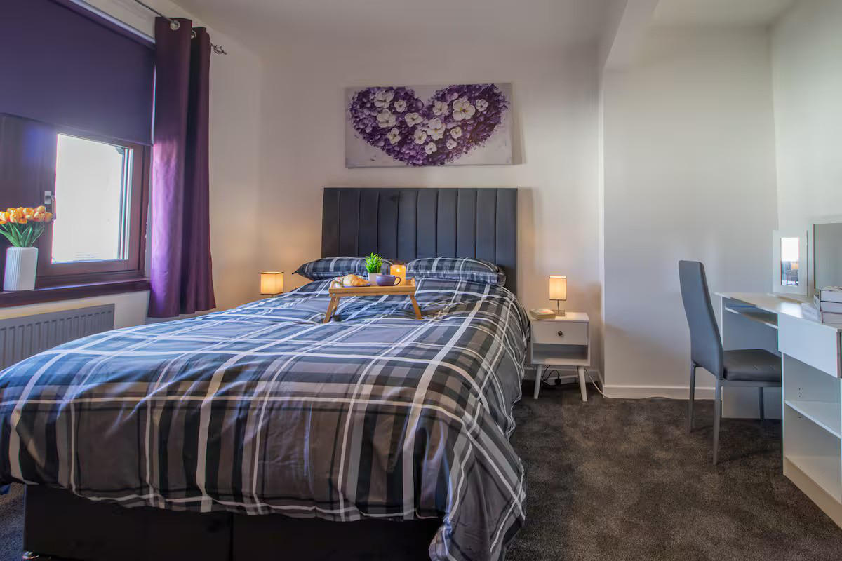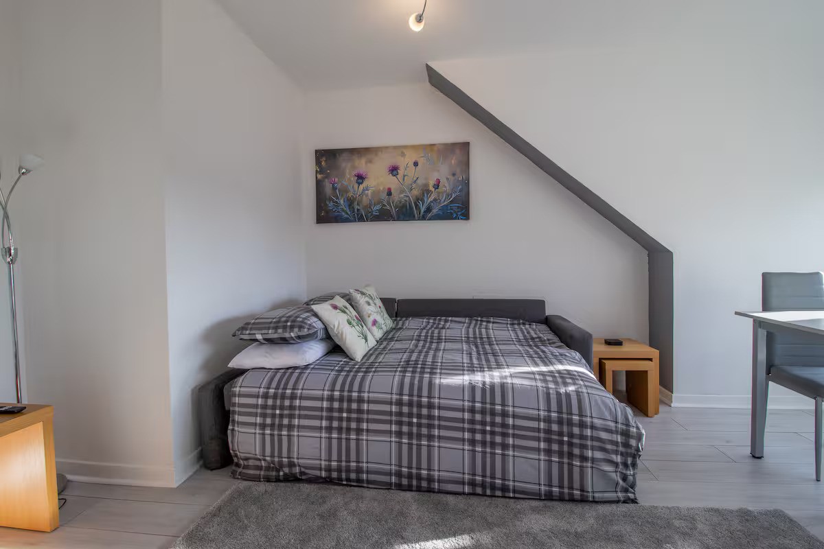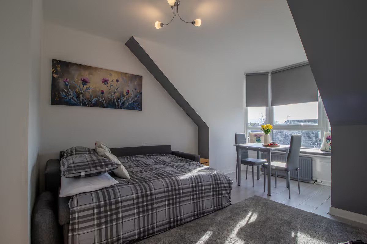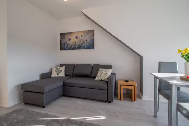 This stylish top floor apartment in the heart of Helensburgh is perfect for professionals, couples, or small families. This stylish 1 bed apartment sleeps up to 4 guests with a cosy double bedroom and a comfortable sofa bed in the living room. The fully equipped kitchen includes all essentials like a kettle, toaster, microwave, and dining table for four. Guests can enjoy complimentary WiFi, a Smart TV, and thoughtful extras such as tea, coffee, sugar, and cereal for a welcoming stay.Situated in the beautiful coastal town of Helensburgh, this apartment offers stunning views over the Firth of..