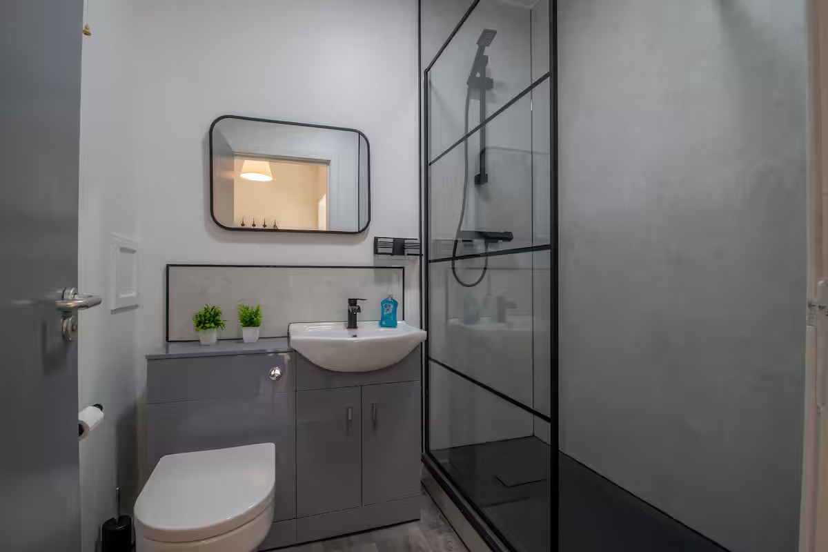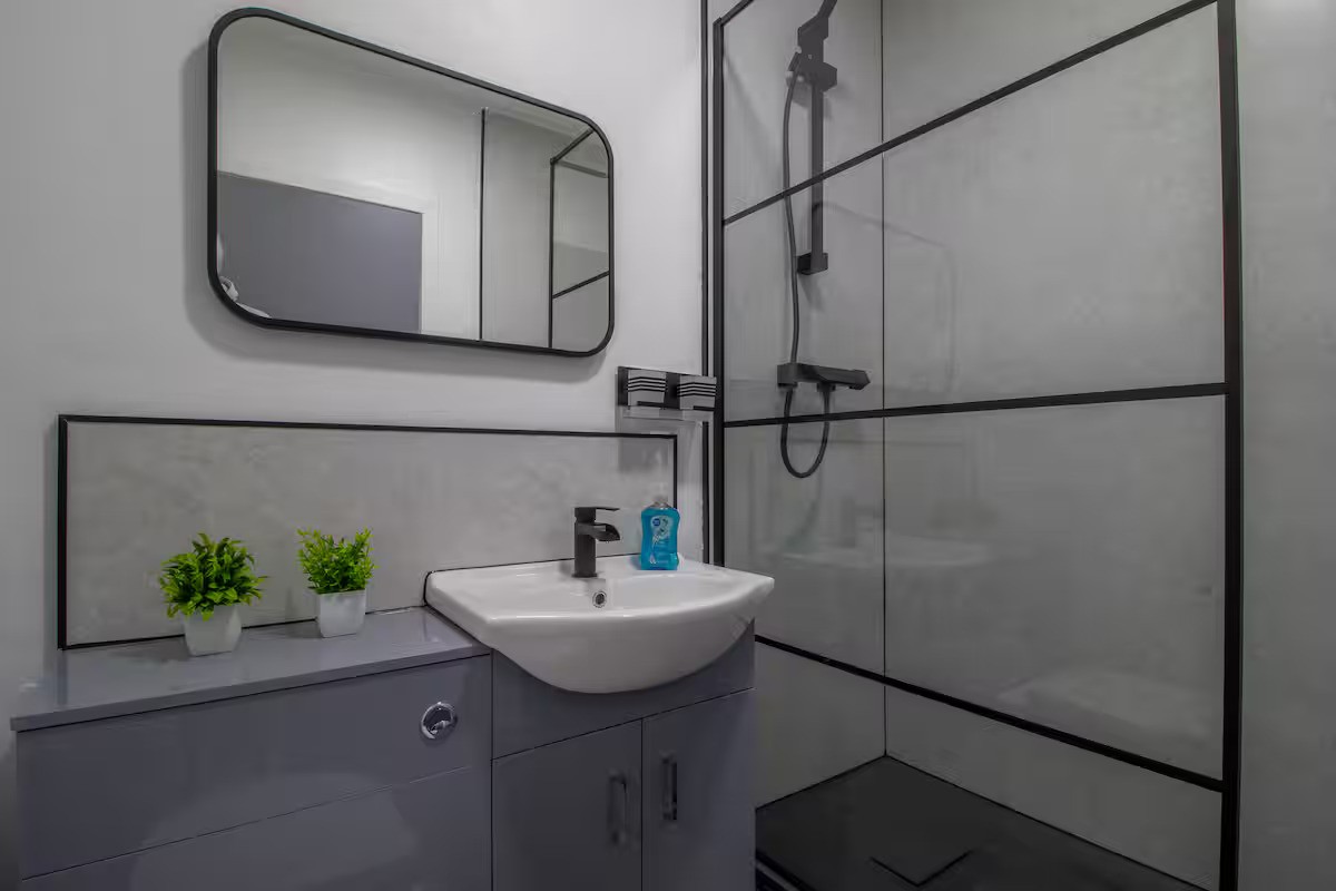 Modern bathroom with walk-in shower