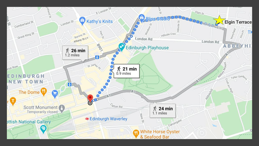 The city centre (Princes Street) is 10-15 minute walk from the apartment and buses run every few minutes from the top of the road.