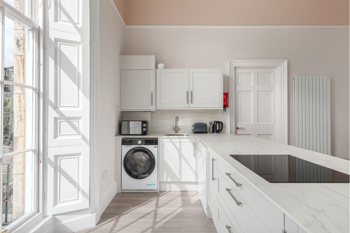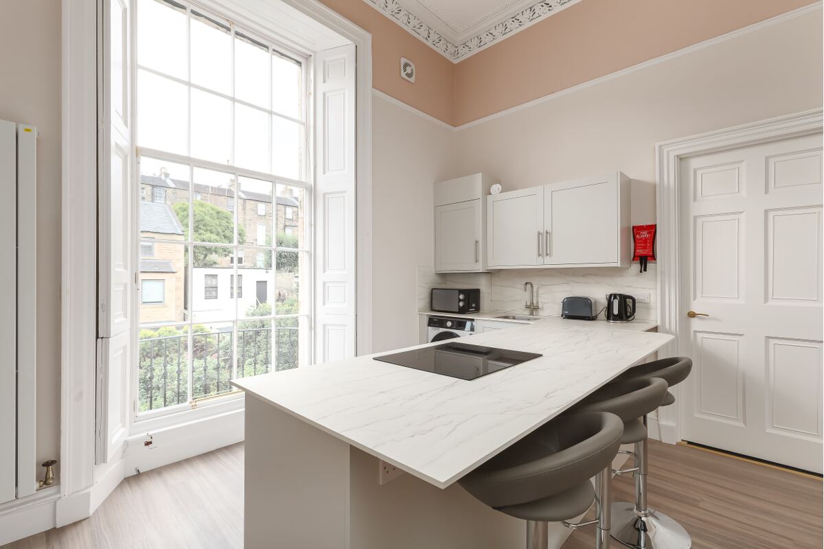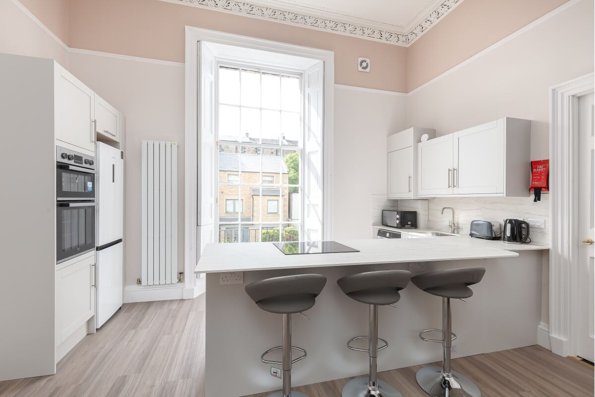Spacious, elegant and newly refurbished 3 bedroom apartment, centrally located in the heart of the New Town. Open concept kitchen/living room/dining room