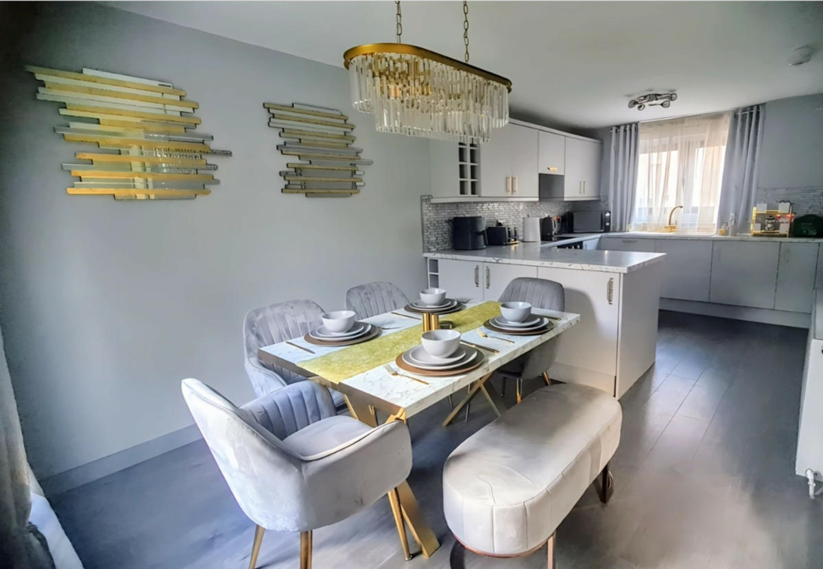 Welcome to this luxury three-bedroom penthouse apartment located in the heart of Stirling city centre! With free on-street parking, this modern and recently renovated maisonette is the perfect base for your visit to this charming Scottish city.Upon entering the apartment, you'll find a spacious and tastefully furnished living area designed to provide comfort and relaxation. Adjacent to the living area is a separate dining space where all guests can gather and enjoy meals together.