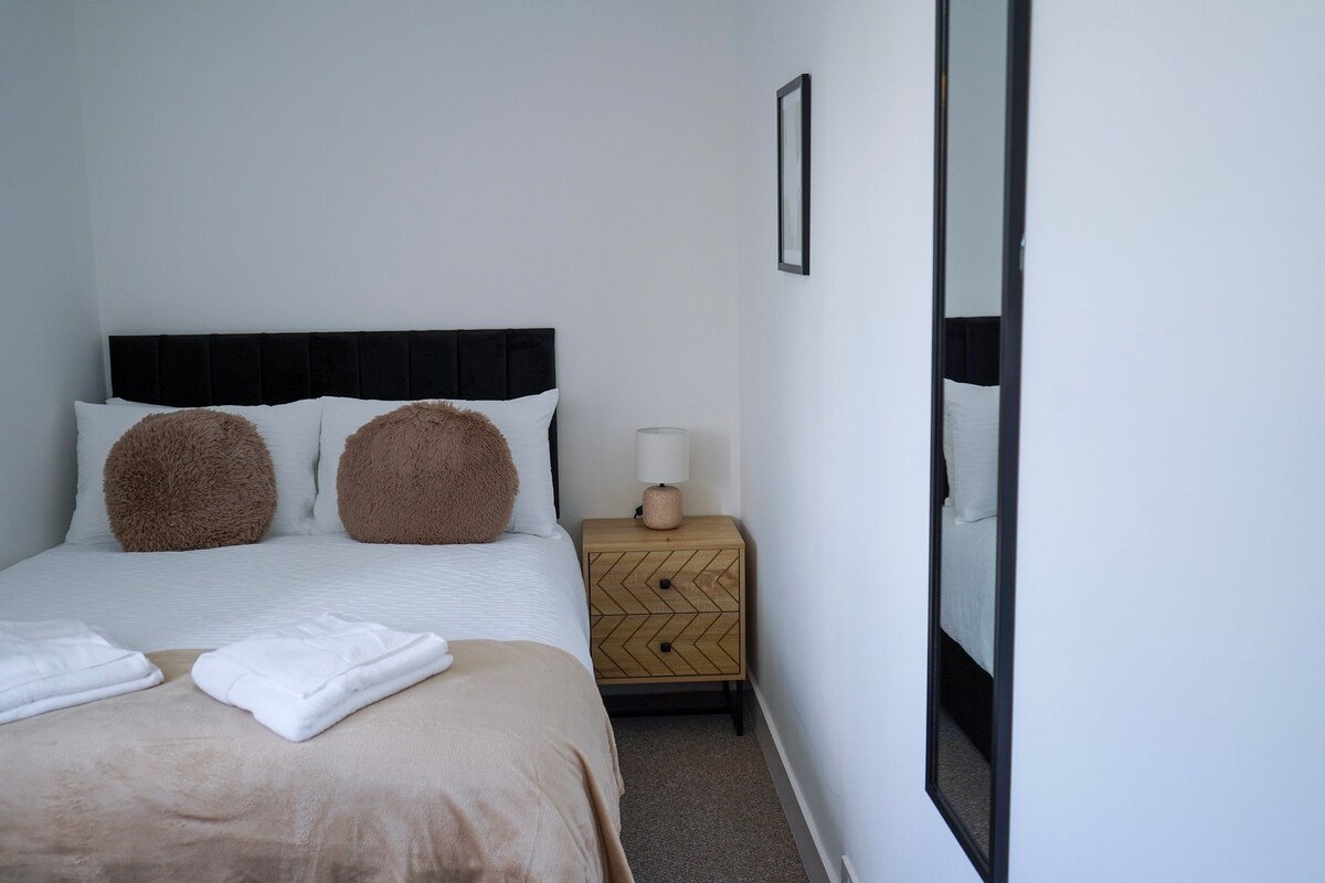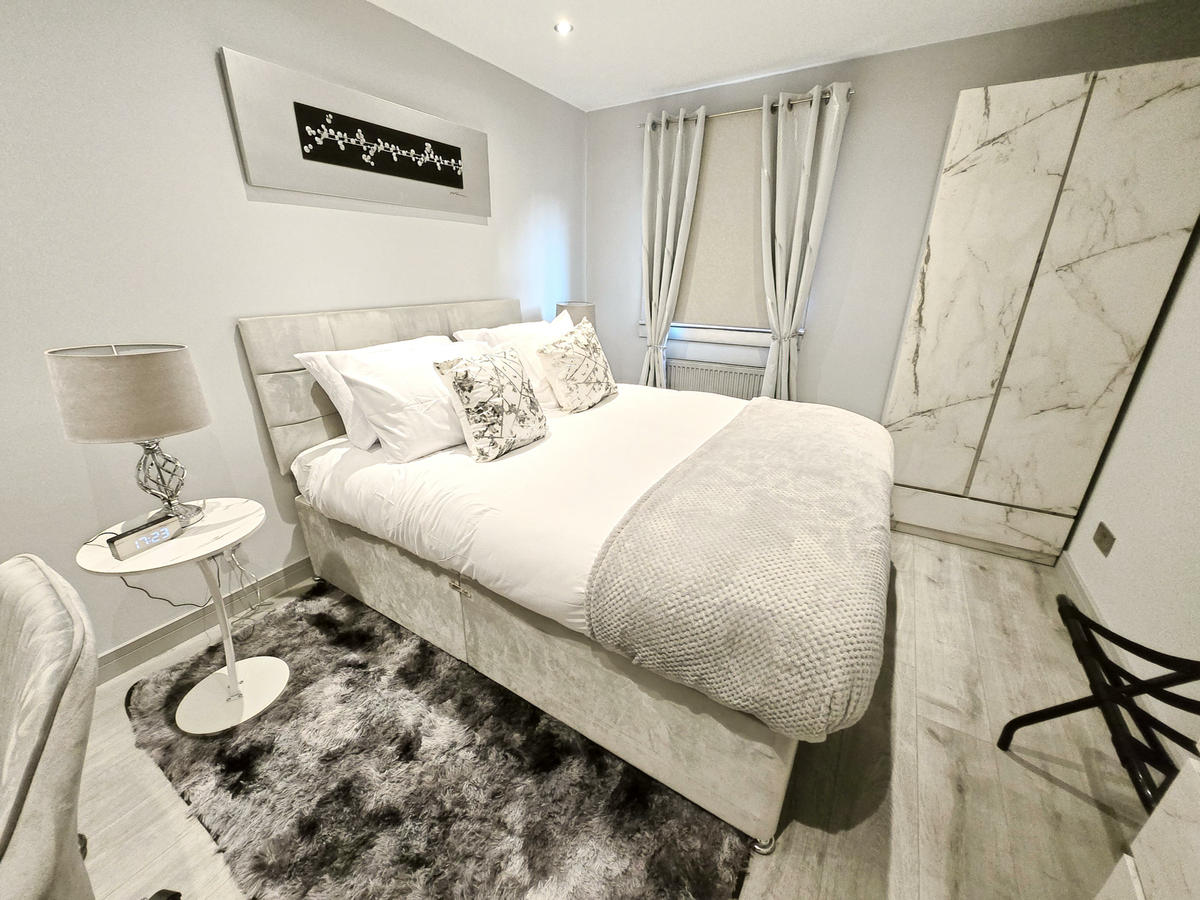 Featuring spacious bedrooms, the open-plan layout encompasses a stylish living room, dining area & fully equipped kitchen and modern bathroom to relax and unwind.Experience the grandeur of our modern open-plan living space, where the high ceilings create an airy atmosphere perfect for relaxation.