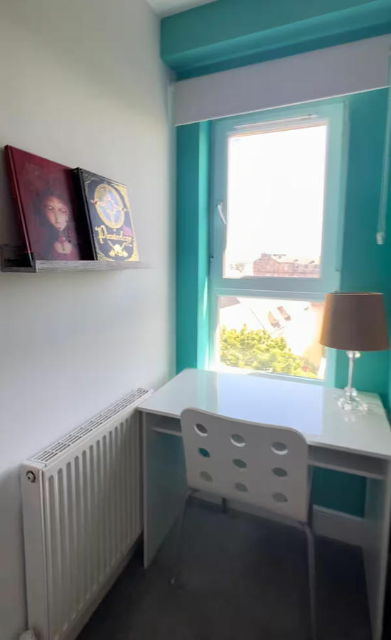 This is a lovely traditional building. The flat has the feel of a house, as it is over two levels in a quiet stair.Southwest of the centre, but within easy reach of all amenities.  A picturesque view, overlooking a lovely large park.
